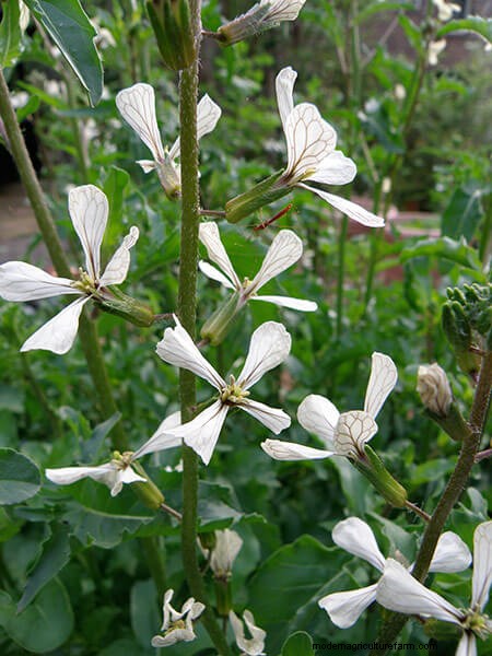 Arugula is considered a vegetable when it is cooked and eaten like spinach, or it can be used more sparingly as an herb to flavor a salad, meat, or pasta sauce. It is not for those who prefer mild flavour like that of an Iceberg lettuce salad; it calls for an adventurous palate. Try the leaves in some of our arugula recipes. Add arugula flowers to salads in late spring or summer as the plants grow a tall bloom. At this point the leaves may be more pungent than you like, but try them just in case.