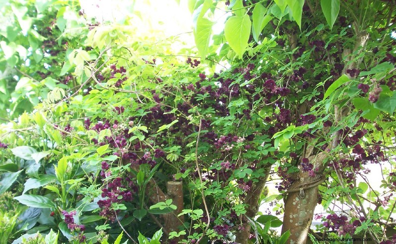 The Chocolate vine is an edible climber in its entirety; from the leaves to the fruit. It can be purchased as a seed or seedling. It is planted in early spring. It blooms with purple flowers. The fruits are purple and unusual in appearance, and the whole plant smells like chocolate. It adapts to any type of garden soil, needs a completely sunny position, and moderate climate. Chocolate vine is very frost resistant. In winter it is necessary to prune it to thin it out and to remove dried parts.