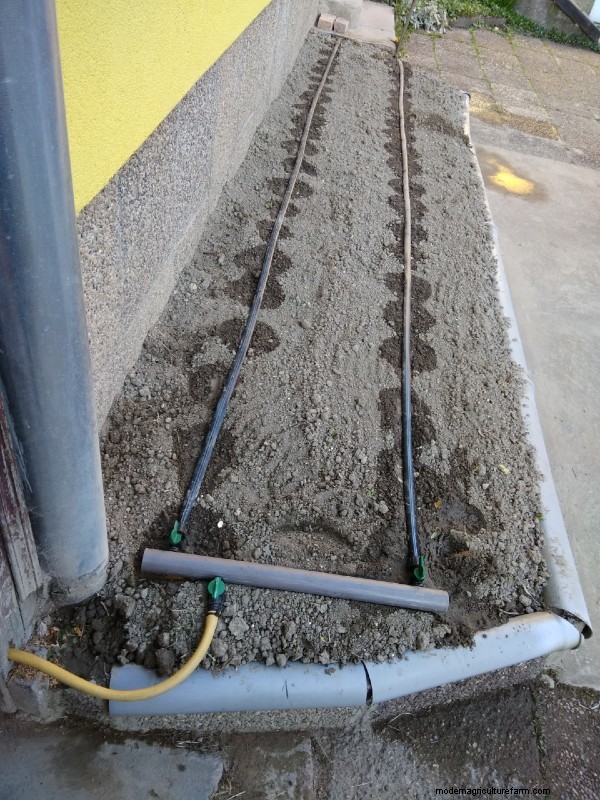 And that is almost all it has to be done. Only one more thing has to be done, cover it all with 55 ft2 (5m2) black drip foil, stuff the stakes, and wait for the seedlings to be ready for planting. The drip irrigation system should start working before planting seedlings, about 15 – 20 days to condition the soil.