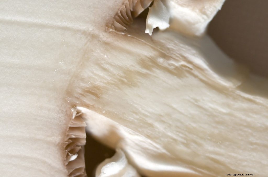 The inside of a torn mushroom is naturally sterile and contains clean fertile mushroom mycelium cells.