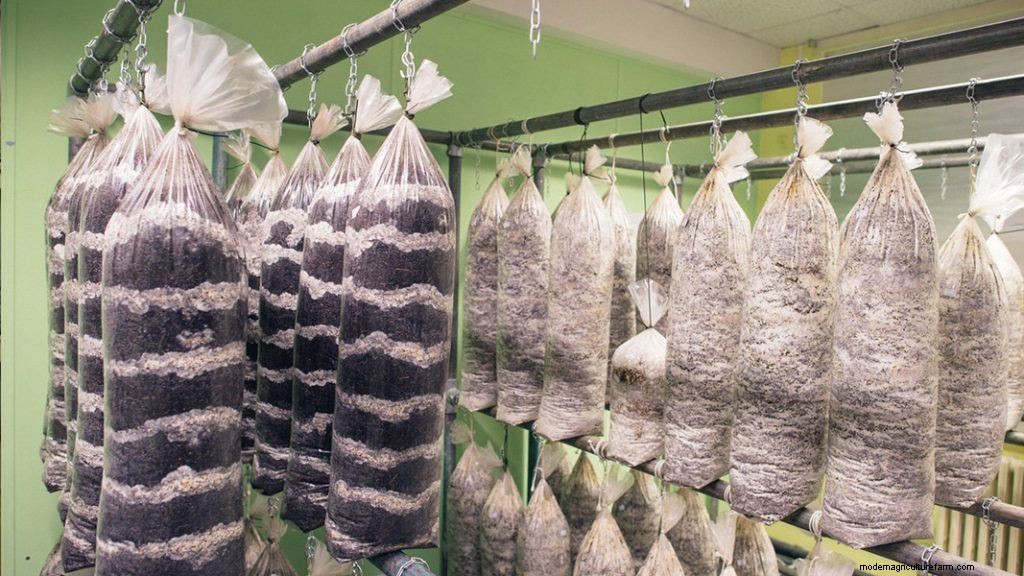 Watch mushrooms and pick them at the optimal harvest time by simply twisting bunches of mushrooms off the bags.