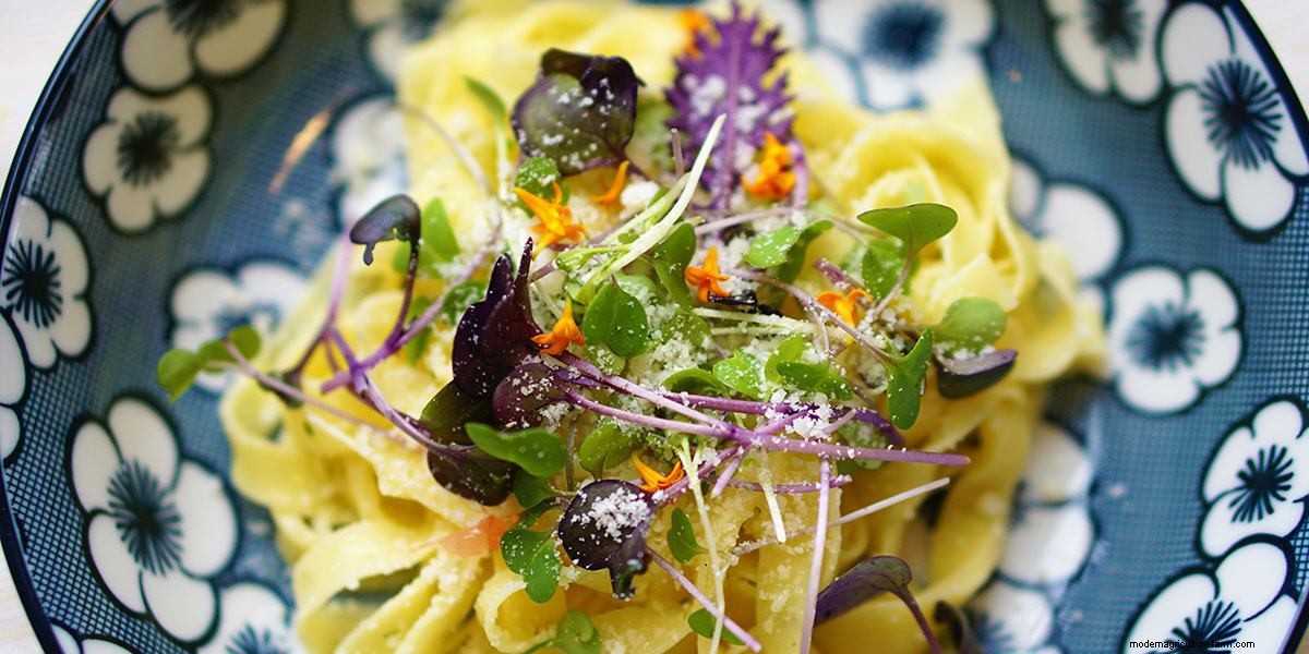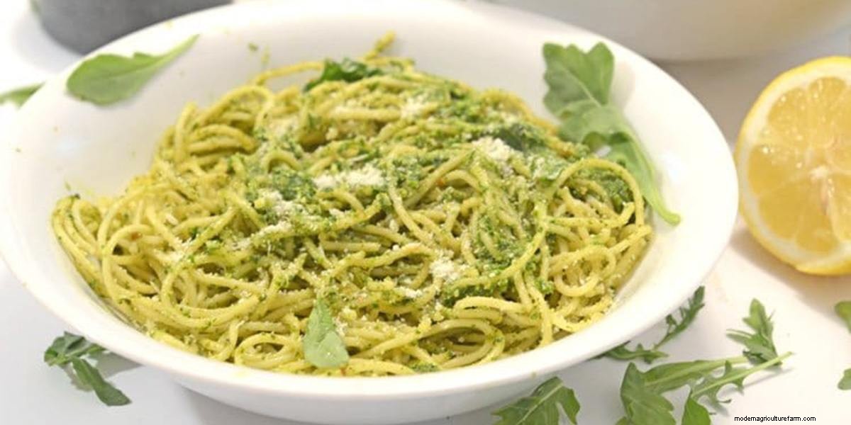 7) Garlic And Lemon Pasta With Arugula Microgreens