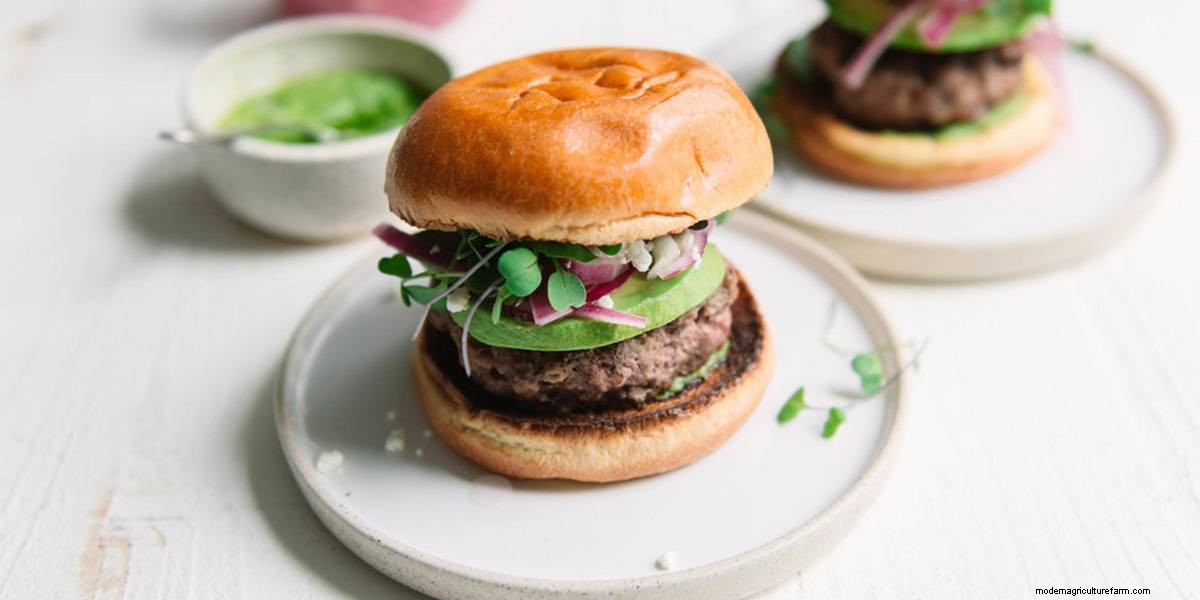 2) Beef Burger With Microgreens, Mint Aioli, & Feta