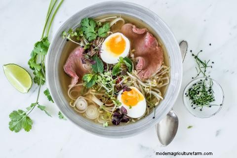 Bean sprouts are a common ingredient in Pho, but this recipe adds some microgreens as well.