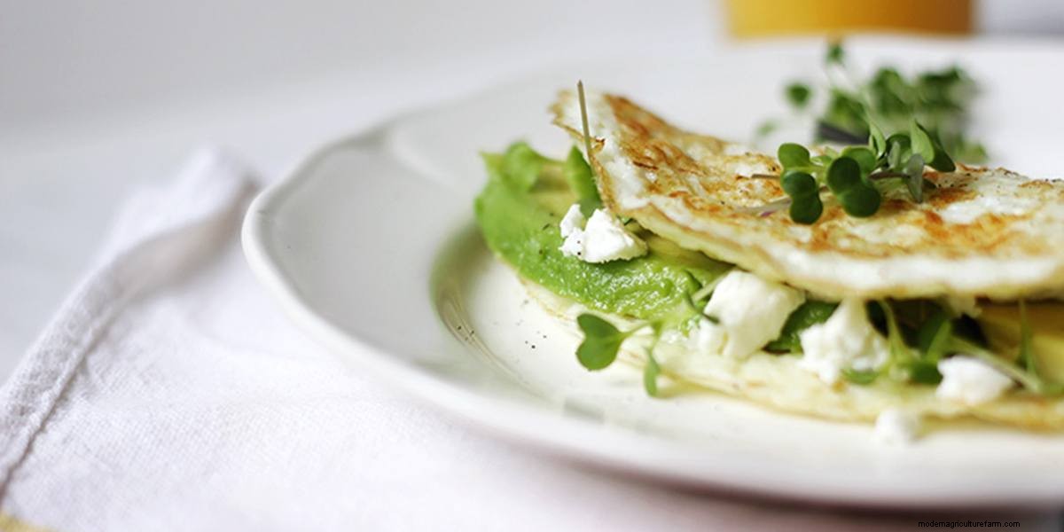 19) Egg White Omelette With Avacado, Goat Cheese, And Microgreens