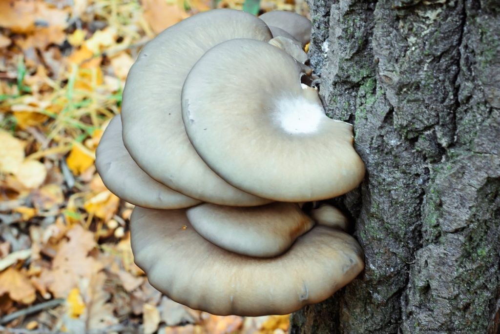 These mushrooms look quite similar to blue oyster mushrooms. They’re even sometimes called “late oyster” mushrooms.