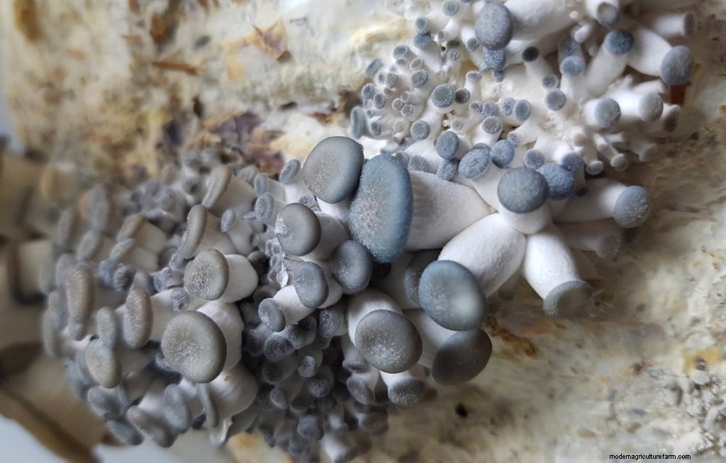 One caveat is that blue oyster mushrooms need plenty of fresh air exchange during the fruiting stage to develop properly.