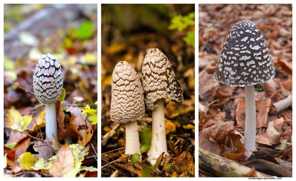 But, magpie fungus does not have the same shaggy-looking scales, and when mature, their caps are dark grayish brown with white fibrils.