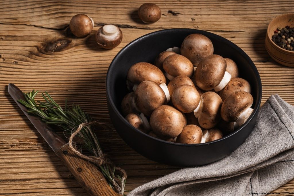 When you leave a button mushroom to fully mature, it develops a large brown cap and stronger flavors and becomes a portobello mushroom.
