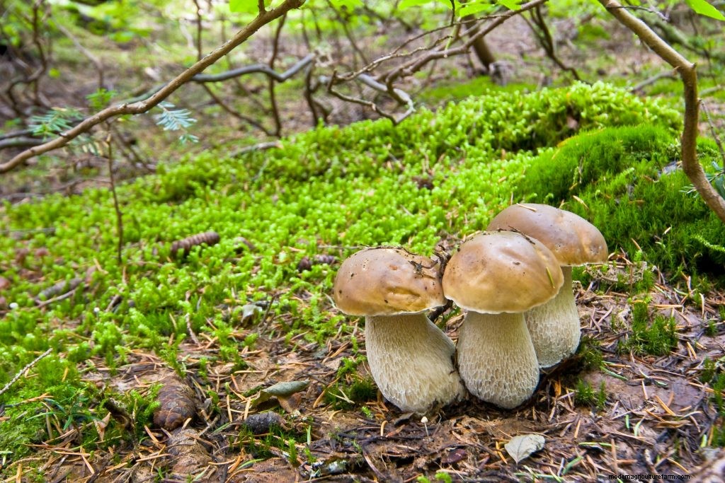Porcini mushrooms like to grow in places where the sun is able to reach the ground. So pay special attention in more open and sunny areas of the woods.