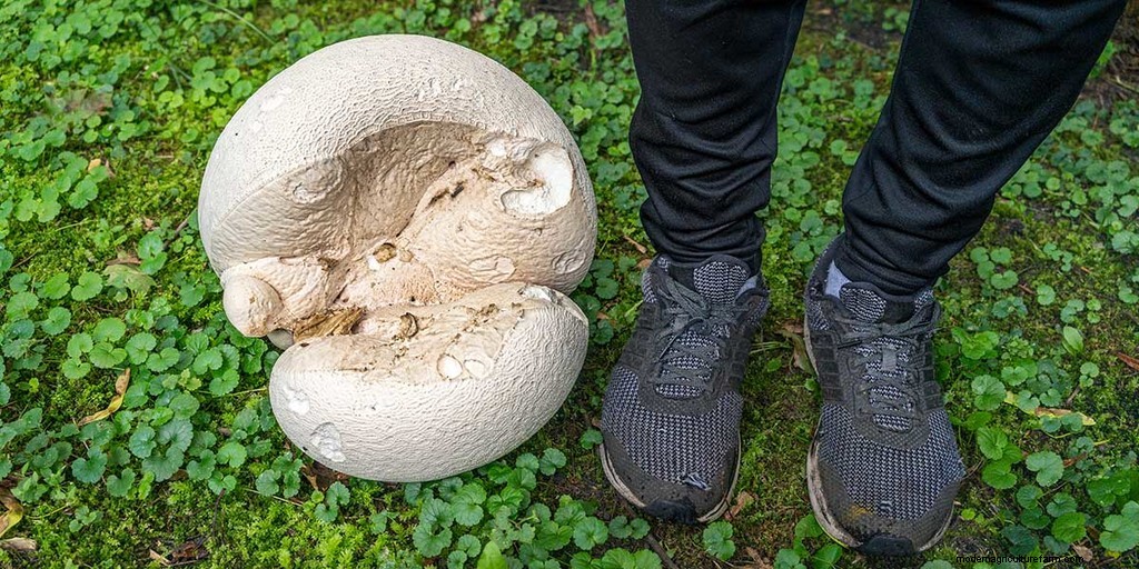 Giant puffballs can reach a foot or more in diameter, which makes them hard to mistake for any other type of fungi once they reach that size.