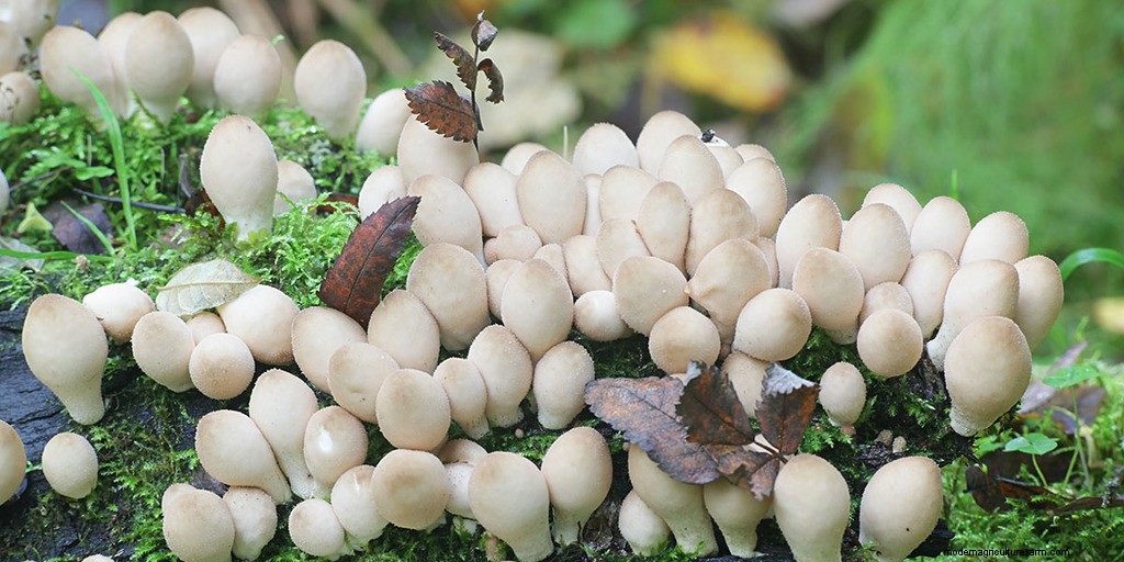 Puffballs look unlike most other types of mushrooms since they don’t have gills. Young ones are solid balls of spongy tissue.