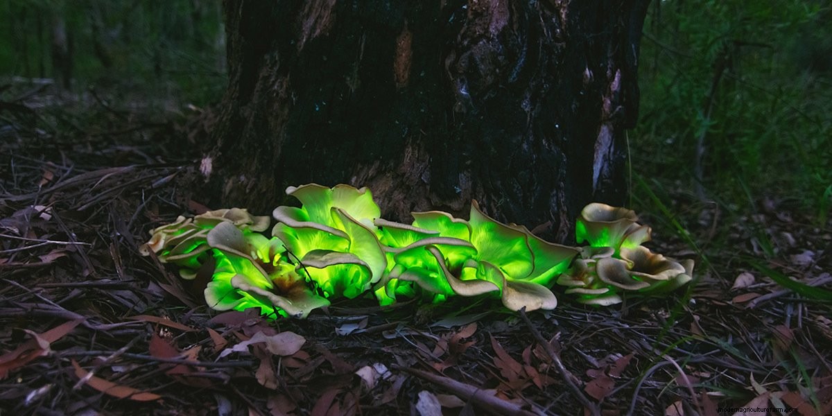 An easy way to tell is because Omphalotus nidiformis is bioluminescent – it glows in the dark! Which is where the mushroom gets its nickname of “ghost fungus”.