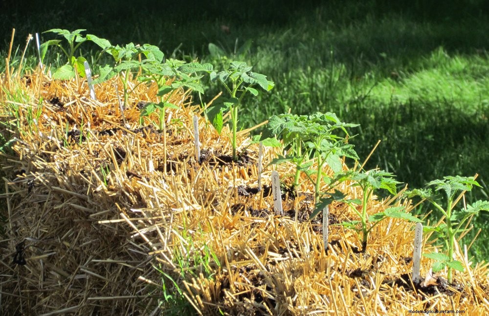 Bales can dry out quickly because they are above ground and permeable. Be sure to water regularly. Drip irrigation or a soaker hose, draped across the top, work well.
