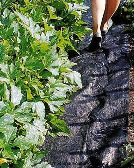 Pro Weed Mat is made of woven polypropylene. It blocks weeds yet is water-permeable. Once in place, this mulch lasts for three to five years, so it's best for mulching permanent pathways.