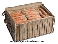A second technique is to store these crops in moist sand. Prepare the roots as above. Moisten clean sand in a large container or wheelbarrow. Pack the vegetables into a tub, wooden box, 5-gallon bucket, plastic-lined cardboard box, or a Root Storage Bin. Start by placing several inches of moist sand on the bottom of the storage container. Lay vegetables on the sand in a single layer, not touching each other. Cover them completely with sand and continue layering until box or bin is full. Top with a layer of moist sand. Container will be heavy when full, so plan accordingly. Remove the stored vegetables as needed.