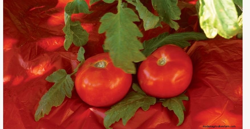 Red Tomato Mulch, an innovative plastic film, performs like black mulch by warming the soil and retaining moisture, with the added benefit of increasing the production of tomato plants by as much as 20%. How does Tomato Yield Booster work? It reflects the beneficial far-red light of the color spectrum up into the plant.
