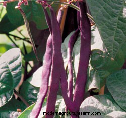 This heirloom pole bean was discovered by Henry Fields in an Ozark garden in the 1930s. Plants climb vigorously to 6 feet and are productive, flavorful and meaty. The 5-7" pods turn green when blanched in boiling water. The blossoms are also purple, making it an excellent choice for edible landscapes. I grow on a trellis, underplanted with basils, French tarragon and snapdragons. 68 days to maturity.