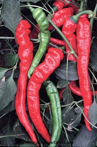 A family heirloom given to SSE by Jimmy Nardello, whose parents brought the seeds to the U.S. in 1888, when they emigrated from a small village in the Basilicata region of southern Italy. The bright red sweet pepper is fabulous raw or fried. It's my favorite pepper to add flavor and color to fried potatoes. Productive plants are loaded with 10-inch-long peppers. 80-90 days from transplant.