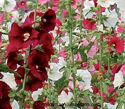 Having graced the outbuildings of farms since the early 1900s, this has become a classic in my garden. With its 9-foot spires, it could easily conceal an outhouse — and eliminate the need for a visiting lady to ask where it could be found. The Outhouse hollyhock is a biennial, so seeds will form small plants the first year and bloom the second. Once established, the plant reseeds freely, so you're likely to have plants in bloom every year. Single blooms are white, magenta, pink and dark burgundy. Although there is no outhouse at Heritage Farm, hollyhocks are still grown for their simple beauty, the hummingbirds, and to make hollyhock dolls.
