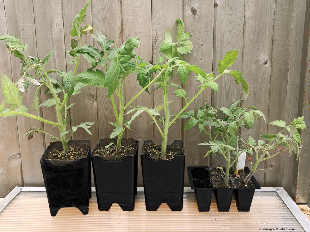Seedlings grow 40% larger with no transplant shock in self-watering Pop-Out Pots, at left.