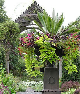 This photo from a garden tour sparked an idea for my own garden using an elevated planter.