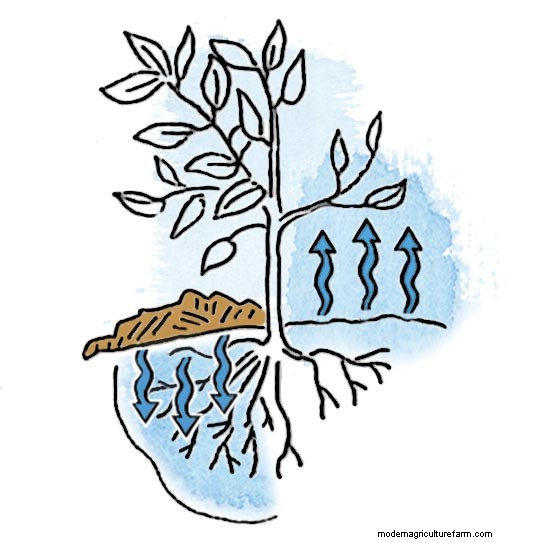 A 6-8" layer of organic mulch can cut water needs in half by blocking thirsty weeds and reducing evaporation. Organic mulches retain some water themselves and increase the humidity level around plants.