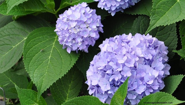 Hydrangeas with bloom colors that range from pink through blue and purple usually belong to the hydrangea cultivars known as mopheads and lacecaps. These types of hydrangeas have the interesting ability to change the color of their blooms based on the chemistry of the soil. When grown in alkaline soil, the bloom colors are pinker. When grown in acidic soil, the bloom colors are bluer.