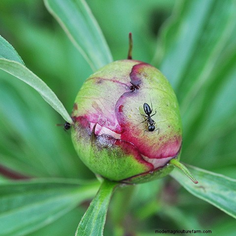 Peony bud with ants crawling on it.