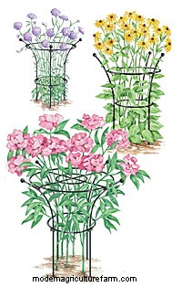 It's important to set up ring-style supports before the plants have grown very tall. There are several styles, including some with interior rings or grids.