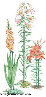 Plants that benefit: Oriental and Asiatic lilies (shorter cultivars), gladiolus, bearded irises, Nicotiana alata, zinnias, Belamcanda chinensis, eryngium (sea holly), digitalis (foxglove), verbascum