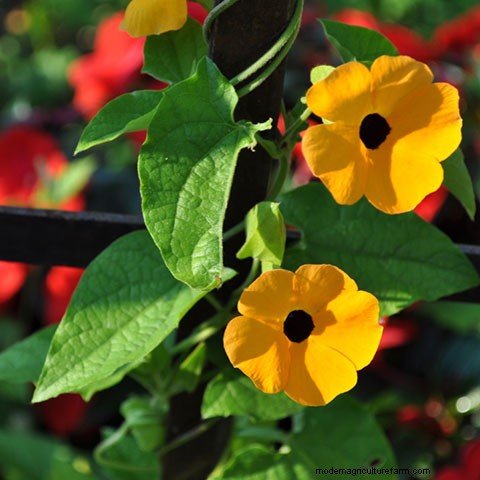 When selecting a climbing vine, it is important to know how it 'ascends' so you can provide the right kind of structural support. Some vines, such as clematis and black-eyed susan vine (Thunbergia), use tendrils — wiry, skinny structures that wrap around a structure. Because tendrils are short, the support should be less than 1/2" in diameter — twine, wire, fish line, narrow wooden slats or branches work well.