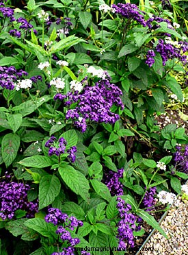 Salvia horminium (Salvia viridis): This is a great plant with purple, pink or white bracts. Like a poinsettia, it's the top leaves that provide the show, not the flowers. Salvia horminium looks good right through late fall.