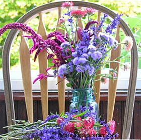 A bouquet of dried flowers in a pretty vase is an easy gift. You can also use dried flowers adorn a grape vine wreath base. My favorite flowers to dry are tall ageratum, amaranth, celosia, hydrangea, lavender, ornamental oregano, salvia, strawflower and yarrow.
