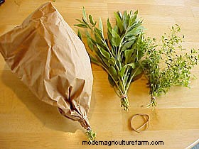 You can use dried herbs to create all sorts of "giftable" items, including culinary herb mixes, herb teas and potpourri. Dry herbs the same way you dry flowers — gather the stems into small bunches with rubber bands, and hang them upside down in a warm, dry, dark place. Cover them with a paper bag to keep the dust off. If humidity makes air-drying impossible, dry them in a warm oven or use a food dehydrator.