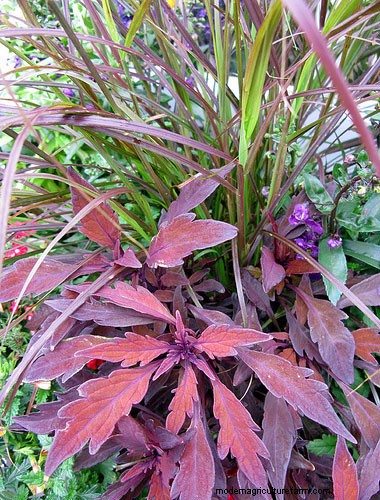 Purple Fountain Grass (Pennisetum setaceum 'Rubrum') is a good structural plant.