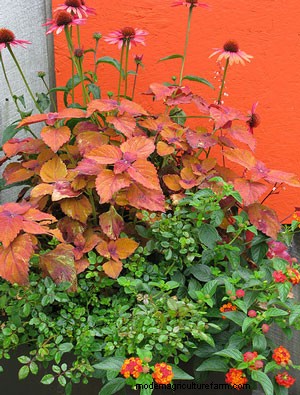 When selecting flower and foliage colors, you may also want to think about the color of your house, the color of your deck or patio pavers, and the color in adjacent beds and borders. That said, pots and planters present a great opportunity to experiment with dramatic color combinations that you'd probably never dare to use in your permanent landscape.