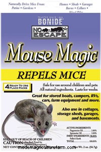 Once the mice are gone, keep them out by checking for openings and keeping food sources secure. Good housekeeping practices and a repellent will help, says Jim Wurz, president of Bonide, the company that makes Mouse Magic, a repellent made with peppermint and spearmint oils. "Mice just really hate it," Wurz says of the minty aroma, which smells like potpourri to humans.