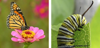 If you love monarch butterflies, leave their larvae, right, to munch on milkweed.