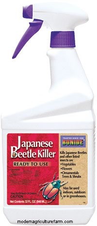 Pyrethrin-based insecticide is a safe and effective way to control these pests on vegetables, grapes, raspberries, flowers, roses, trees and shrubs. In addition to controlling Japanese beetles, it also controls cucumber beetles, flea beetles, cabbageworms, Colorado potato beetles, and more.
