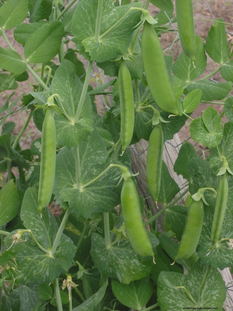 Keep the rows weed free or mulch. After sowing, a thin line of fertilizer can be traced along either side of the row and worked in 3-4 inches from the plants. Too much nitrogen encourages foliage growth and not pods. Peas need constant soil moisture to keep developing well, and the ground should be watered when there is a lack of rainfall.