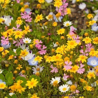 Alternative Lawn Wildflower Blend — How about getting rid of lawn altogether? This blend of thirteen low-growing, flowering plants is like a rich carpet of colour, and it self-sows to come back for year after year. It can be mixed with any of the above, but be aware that it won’t perform well under regular mowing. It will attract and feed key pollinators all summer long.