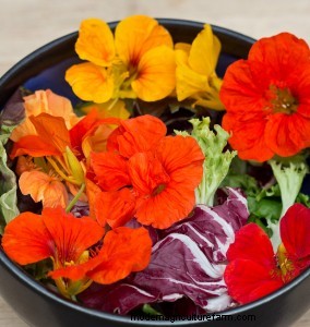 Calendula and nasturtiums have a delightfully spicy flavour and brilliant colours that will spice up your salads. Sneak these flowers into a grilled cheese sandwich with a bit of arugula, and you have a deluxe lunch time treat.