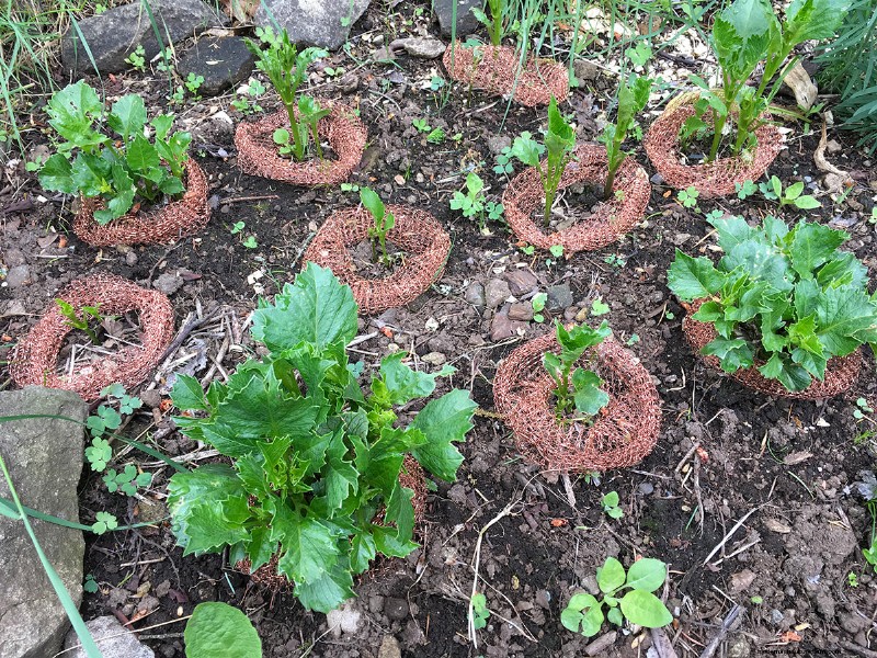 If the vegetables in your garden are packed in very close to one another, you can end up creating a damp canopy under which slugs and snails (and woodlice) can flourish. So space your plants with this in mind – a few more inches here and there can make all the difference. Remove the large outer leaves from your lettuces and Brassicas. This will increase air flow and help to dry the soil up at least somewhat.