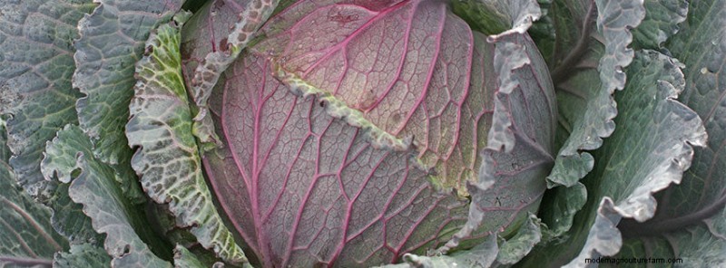Like other cold-hardy Brassicas, overwintered cabbage has great flavour and a subtle sweetness. Refrigerate cabbages as soon as possible, regardless of the time of year, and use plastic bags with holes cut for ventilation. Cabbage reacts with aluminum cookware, and creates a fairly intense smell while cooking, so use steel, glass, or ceramic pots. The smell increases the longer cabbage is cooked because its sugars are released when it boils. Slice cabbage thinly and cook it quickly for the best result.