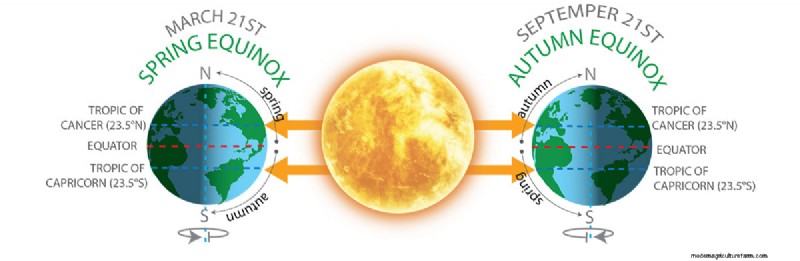 As we travel around the sun, Earth is spinning in a 24-hour long day on its north-south axis. But the north-south axis of the planet has a wobble, so it’s not spinning like a perfect top. Twice a year, on the spring equinox and the fall equinox, it does spin like a perfect top because the equator is the point on Earth nearest the sun, relative to our north-south axis.