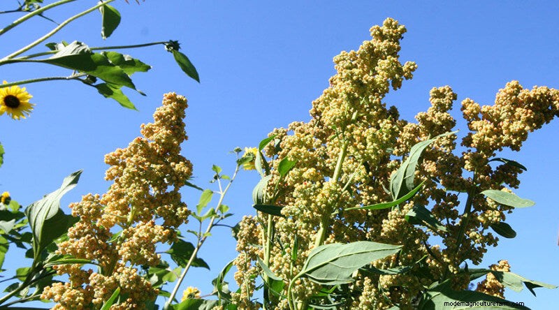 This ancient grain crop is grown primarily for the abundant seeds it produces at the end of summer. It’s an easy crop to grow, and quite attractive looking. Quinoa is unusual among cereal crops because its seeds are 14% protein by mass, and this is thought to be “complete protein.” That means that it contains all nine of the essential amino acids needed to meet the dietary needs of humans and other animals.