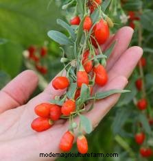 Goji is a shrubby plant that can, in time, grow 1-3m (3-10′) tall. Growers space Goji plants 60cm (24″) apart in rows that are 2m (6′) apart. Spaced this way, 15 plants in a 30-foot row can produce up to 100 lbs of berries in a year. Goji is self-pollinating, so even a single plant will produce fruit. Goji is unusual in that it prefers relatively infertile, slightly alkaline soil with a pH range of 6.8 to 8.1. Goji reacts poorly to fertilizer and manure, so if you’re growing in a large container, use simple top soil with some perlite mixed in for drainage. Avoid peat-based soils. Shanghai Express Goji Berry Seeds.