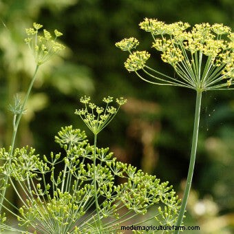 Timing: Start indoors in the latter half of April for transplanting in early June, or direct sow no earlier than the end of May. Sow repeatedly for a steady supply. If starting indoors, use peat pots — transplant shock can cause dill to bolt. Sow some more seeds in the fall for an early spring crop the following year.