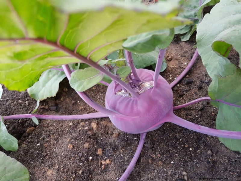 You can easily fix this issue by burying them up to their first leaves when transplanting them in your raised beds. This will strengthen their base stem. Be careful not to only cover the future bulb with soil. Kohlrabi doesn’t grow roots in the ground, but rather, bulbs that swell above soil level. So make sure not to plant them too deeply.